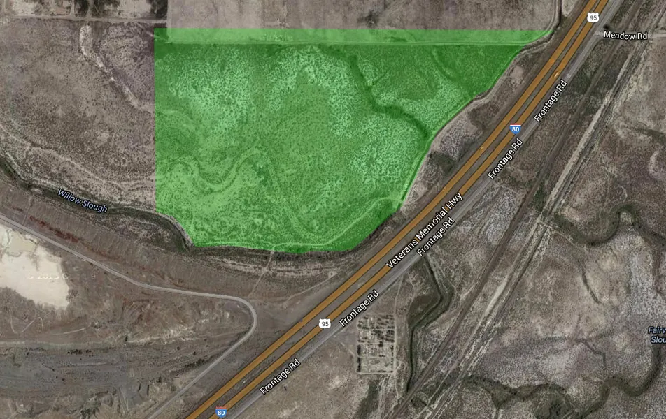 Directions: Take I-80 east from Reno. The West Lovelock exit is exit 105 and is located about 60 minutes east from Reno. Take exit 105 and turn right onto the frontage road which runs back west along the south side of the freeway. Turn right on Westfall Road and pass under the freeway, then turn right onto the gravel frontage road. When you come to the bend in the road which then takes the road northwest away from the freeway, you will see a smaller graveled road on the right. This road is the easement which connects the frontage road to the property. The property is approximately 530' down this road, beginning just past the drainage ditch and extending northward to the developed agricultural production land on the far north side. See attached satellite map for parcel shape to assist you in identifying the property.