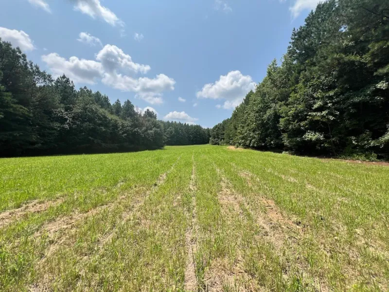 There are two power lines that intersect the property. These power lines are roughly 100 feet in width. These are fantastic locations for hunting blinds and tree stands. Wild game trails cut throughout the timber, which is a mixed stand of pines and hardwoods. The elevation varies throughout the tract as well. The elevation is roughly 690 feet along the road and gradually drops to 610 feet around the far eastern boundary. The elevation is at 690 feet in elevation where the open field is located.