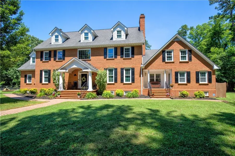 Stunning 3 Story Brick Colonial Home on over 6 Aces with a 3 Car Attached Garage, 10' Ceilings, In Law Suite, In Ground Pool, Horse Pasture and Cable Internet!!! The Kitchen has Custom Cabinets, Granite Countertops, Stainless Steel Appliance to include a Sub Zero Refrigerator. The Family Room features Tile Flooring, Shiplap Accent Wall, Wet Bar & Fireplace. Off of the Family Room is a Full Size Bath with Custom Tile Shower which is Conveniently Accessible from Garage to Pool. The Living & Dining Room have Hardwood Floors and are Open to the 2 Story Foyer. There is also an Office Space and Half Bath on the 1st Floor. The Primary Bedroom has New Carpet, Brick Fireplace, En Suite Bath and Walk In Closet. The Primary Bath has a Custom Tile Shower, Double Vanity and Jetted Tub. There are 3 Additional Bedrooms w/ New Carpet and a Full Sized Bath. The 3rd Floor is the Rec Room and it has New Ca...