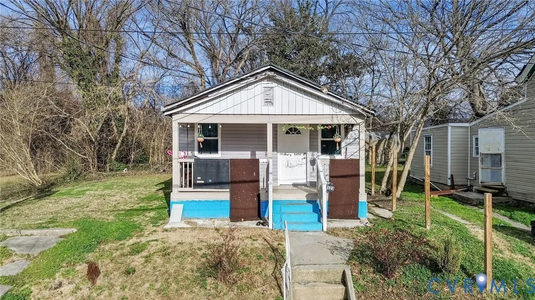 Tucked away just off of exit 51 on I-95 in Petersburg is this 2 bedroom cottage that's perfect for a starter home or an investment property in your rental portfolio! Out front you're greeted with a covered porch leading you to an open floor plan with the living room and eat-in kitchen (both illuminated with recessed lighting to make them appear more spacious!) The kitchen has all stainless steel appliances, recently replaced granite counters, and tile backsplash. There are hardwood floors continuing throughout the living room and both bedrooms, and tile in the kitchen, bath, and laundry rooms (*washer and dryer convey.) The home is heated and cooled with central air and a newer HVAC unit. Outside you have a level back yard with a storage shed and partial fencing on 1 side (only 1 close neighbor!) There is vinyl siding in excellent shape for weatherproofing peace of mind. This is a sidewalk community with the safety of street lights and for family friendly activities Jefferson Street Park is 1 block over. For evening activities, Club 17 is right across the street. Both I-85 and I-95 are 5 minutes away for commuters!