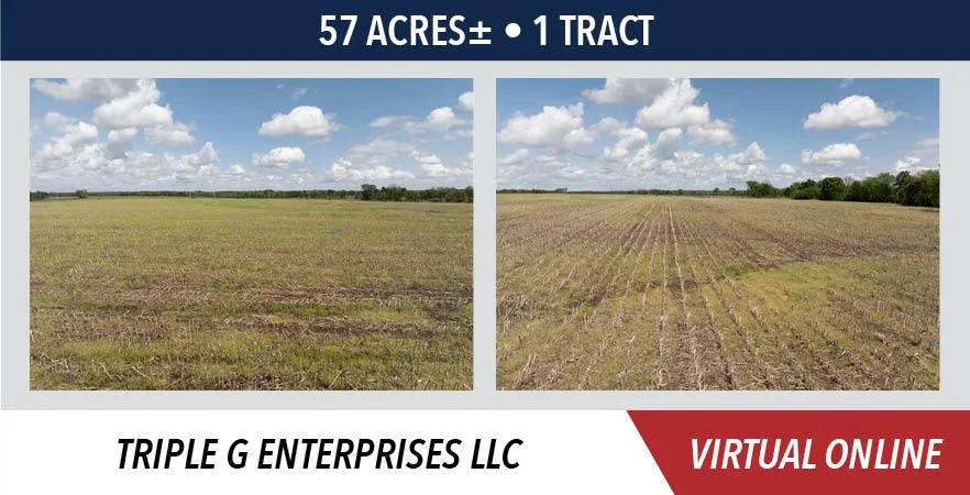 The Triple G Enterprises LLC land will be sold on a price per acre basis, based on 57 taxable acres.