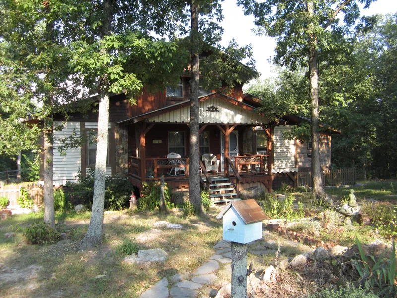 This is a magnificent property. The home is a hand built wooden structure that is super nice. There is about 2400+/- sq ft of living space with 3 BR and 2 baths. Everything in the house is built for function and is charming beyond words. The two story barn with 2 12ft car ports is a beauty. This is a must see home. The owners have made this a retreat from the world. It has everything that you need but is totally environmentally conscience. There are herb gardens, storm cellar, wood heat, chicken house, water holding tanks, etc. etc. The property borders the beautiful 6500+/- sq ft acre conservation ground which provides great privacy. The front of the property with about 780 feet of road frontage has a 2K sq ft pavilion and cedar rental cabin. The home sits at the end of a private lane about 1500 feet off the paved road. The privacy and charm of the property should be a text book on the best of country living. Also, the property is very close to the Meramec River and the Meramac Trout Park. This area is known for all of its many outdoor recreational activities and the natural beauty of the Ozarks.