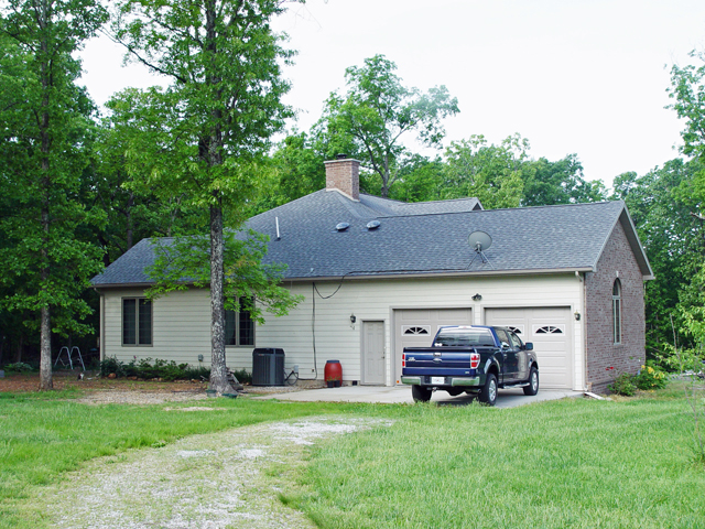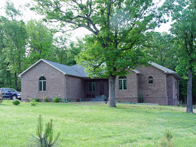 This 3 bedroom, 2 3/4 bath Ranch home sets on 5.34 acres m/l south of Rolla about 20 minutes. It is centrally located from Rolla, Salem and Ft Leonard Wood, about 20 minutes each and 10 minutes north of Licking. The home was built in 2005 by the Seller, contains about 2400 sq ft on the main level with about 2100 sq ft in the walkout basement that is unfinished. Amenities include vaulted, trey or 9 ft ceilings throughout home, brick and Hardie-Board exterior, lots of hardwood floors, ceramic tile, large sunroom, custom oak cabinetry, large rooms, forced air wood fireplace, central HVAC with heat pump, low utility costs, 3 car garage (2 on main and 1 lower), covered deck, 30x48 painted metal shop/garage with concrete floors, electric and water. The land is mostly wooded with some cleared and borders paved highway. The home sets back off the road in about the middle of the tract, an extremely nice property.