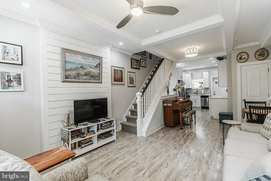 Motivated Seller! Welcome to 2504 S American St, a designer-like 2 story, 2 bedroom, 2 bath, porch-front home that could easily grace the pages of Architectural Digest. This pristine and perfect residence offers an open floor plan, abundant natural light, a beautiful kitchen, expansive outdoor space, two generously sized bedrooms, two full spa baths, and a finished lower level. Upon arrival, a private porch invites you into the main level, where you'll discover a stunning living room and dining room adorned with wide-plank floors, coffered ceilings, a shadow box, and shiplap walls. A large window floods the space with light, creating a warm and inviting atmosphere. The living and dining area seamlessly transitions into a tastefully designed kitchen featuring 42-inch cabinets for ample storage, designer quartz countertops with a ceramic tile backsplash, Frigidaire stainless steel appliances, and a separate island with a built-in wine refrigerator. From the kitchen, a rear door opens to your own canopy-covered garden oasis, the perfect setting for dining al fresco. A beautifully restored staircase leads to the second level, where you'll find a sun-drenched, expansive master suite with double-wide windows, wide plank flooring, a designer ceiling fan, a gorgeous raised-wood paneled wall, two closets for ample storage, and a luxurious full marble bath with a double vanity and frameless glass shower. Additionally, the rear bedroom features a large window and closet, while the hall area boasts another tastefully done spa bath and a convenient front-loading washer and dryer nook. The fabulous, finished basement offers generous ceiling height, mechanicals, and two separate extra storage rooms. This space provides flexibility for various uses, enhancing the home's functionality. This home is not your average two-story, two-bedroom dwelling. With meticulous attention to detail and friendly neighbors in a convenient location, 2504 S American St could be the perfect fit for you.