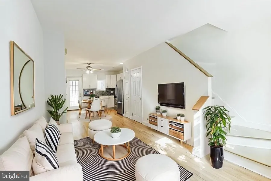 Great new 3 story, 3 bedroom, 2 full bath Bella Vista home with private parking! First Floor: Open floor plan- light filled living room/dining room with high ceilings, hardwood floors, well-equiped kitchen with granite countertops, stainless steel appliances, glass backsplash and a rear door that leads to a shared garden and your own private parking space. Second Floor: 2 nice size bedrooms both with beautiful hardwood floors, nice light & good closet space plus a full new tile bath. Third Floor: Master Suite with soaring, cathedral style ceiling, full bath/jacuzzi, nice closet space and a private rooftop deck. Basement: mechanicals, storage & washer/dryer. This home is located in a convenient area and across from Shot Tower Coffee Shop. Make your appointment today!