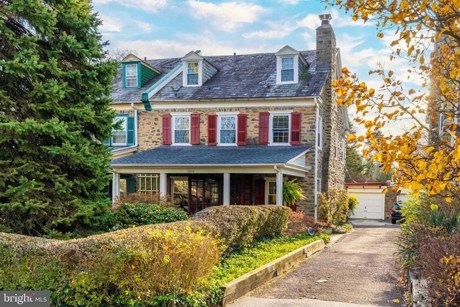 This quintessential Mt. Airy twin is situated at the top end of Lincoln Drive a picturesque, tree-lined street that ends in scenic trails and the green spaces the neighborhood is known for. Highlights include 5 bedrooms, a spectacular sunroom addition, a surprisingly large yard, and a brand new boiler (October 2025). As you approach the home you'll pass the brick front patio, a lovely spot for outdoor dining. Step through the vestibule into a warm and inviting living room featuring built-in bookshelves, a cozy fireplace, and timeless character throughout. The dining room is adjacent to the kitchen (unique stained glass divider included) which allows for easy entertaining. The star of the show is the beautifully designed sunroom addition that seamlessly blends indoor comfort with outdoor charm. Bask in the natural light while you enjoy your coffee or use the automatic shades for filtered light. Glass doors open to a delightful yard that you would never guess was there from the street an ideal space for gardening, play, or outdoor entertaining. There is laundry and a powder room on this level for added convenience. The second floor offers three bedrooms, one currently used as an office and one as a den. Adjacent to the office is a light-filled bonus room with built-in storage and an entire wall of windows perfect for yoga or crafting. There are three additional rooms on the third floor; two charming bedrooms and a smaller room, perhaps a home exercise room or small study. Each of the upper levels offers a full bathroom. The property also includes a shared driveway and a detached garage for added convenience. Located in one of Mt. Airy's most vibrant communities, you'll love the easy access to transportation, shops, restaurants and the Cresheim Trail. Walk to local favorites like Mt. Airy Tap Room, Tiffin and Mt Airy Coffee, as well the as the beloved High Point Cafe at the Allen Lane train station.