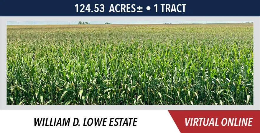 The William D. Lowe Estate farm is located approximately 12 miles west of Tuscola, IL or 25 miles southeast of Decatur, IL in Section 2, T15NR6E, Lowe Township, Moultrie County, IL.