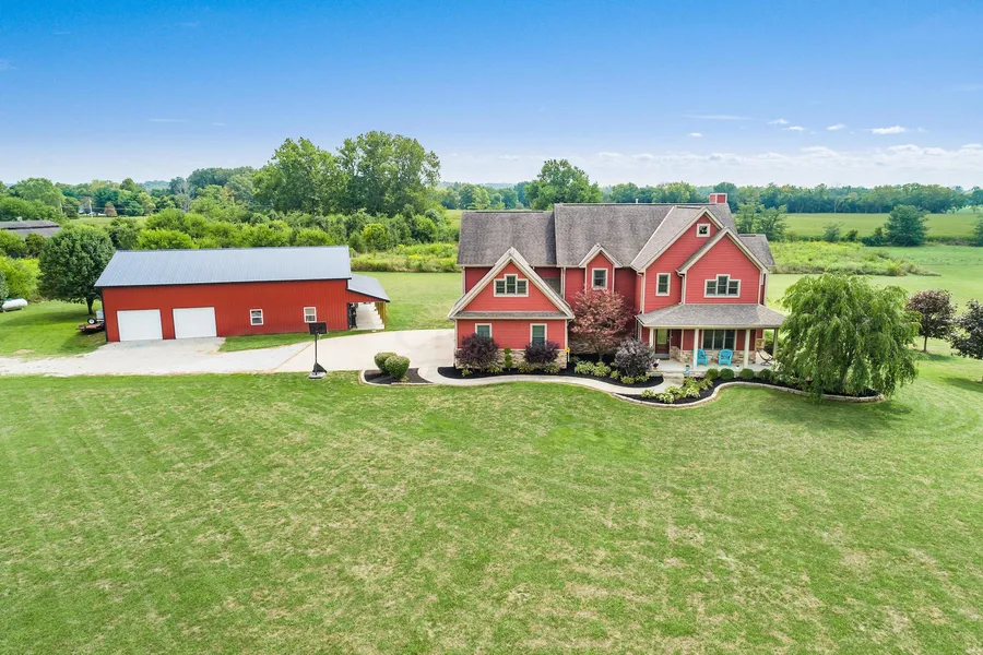 Beautiful two story 4 bedroom 3.5 bath home with 3 car attached garage and brand new 40x60 pole barn complete with concrete floor and front porch all located on 6.03 acres. This nearly 5,000 sq ft home has it all. You will enjoy a cozy front porch, stunning foyer, 1st floor office, large living room and kitchen with cherry cabinets, plus 1st floor mud room with laundry area. 2 different stairways lead to the upstairs where you will find the large owners suite with vaulted ceiling, fireplace, walk in closet, ensuite and bonus room. 3 additional large bedrooms and a 2nd bonus area can be found upstairs. All rooms have 6 panel wood doors with crafted molding around each door. This home is complete with large finished basement with entertainment area, storage room and full bath.