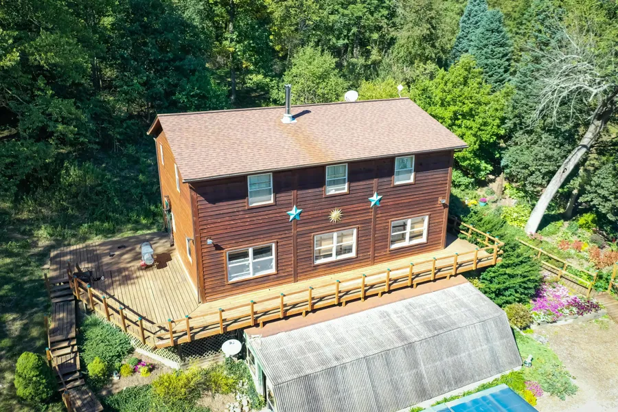 29.2-acres for sale in Westfall Schools! Great opportunity for hobby farmers and homesteaders! Owner-built, 3 level timber frame home completely resided in Western Red Cedar in 2014 and surrounded by a deck on 3 sides. Walk-out greenhouse on lower level. New well pump, heat pump, & furnace installed 2020. Move in ready chicken coop & animal barns with electric are attached to a newly fenced 3-acre pasture. Spring-fed, feeder creek from Big Darby Creek runs through the property. Multiple flower gardens & an area for a large vegetable garden. Apple, pear, peach & cherry trees on property. Whitetail deer and bird species including hawks and wild turkeys have been seen in the woodlands. Dont miss this!