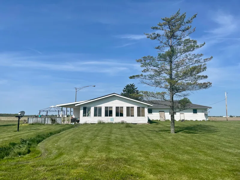 County home with endless possibilities, two bedroom, 1-1/2 bath, Large eat-in kitchen with open concept dining room, living room and spacious family room/ 4 season room. 30x 30 unfinished walk-out basement leading to covered patio, 50x 80 building with oversized 14x 14 garage door, metal roof, concrete driveway. This home is AS-IS, needs new flooring and cosmetic repair, perfect opportunity to make it your own! Minutes away from Deer Creek State Park! Conventional/ Cash Only!