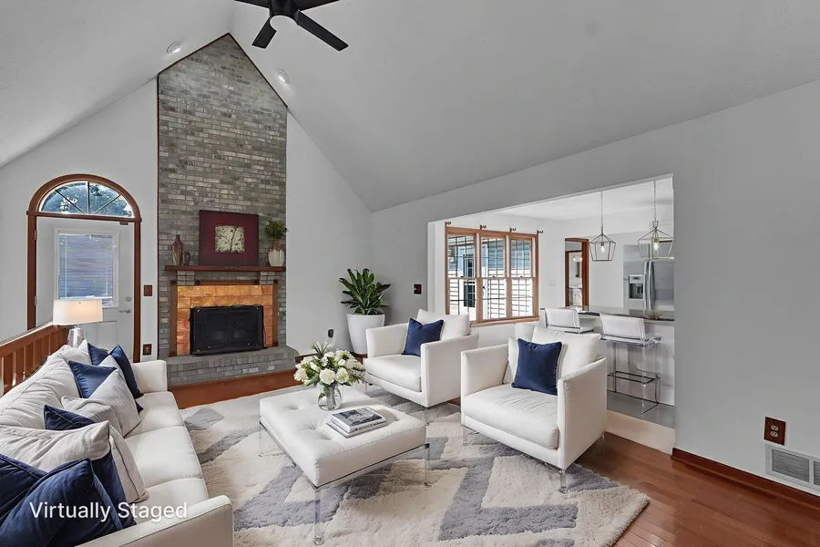 Welcome home to this gorgeous ranch nestled on nearly 5 acres, complete with a long, scenic driveway that leads you to a welcoming front porch perfect for relaxing evenings. Step inside the foyer and be greeted by soaring ceilings and a warm, light-filled living area accented by a striking fireplace.
