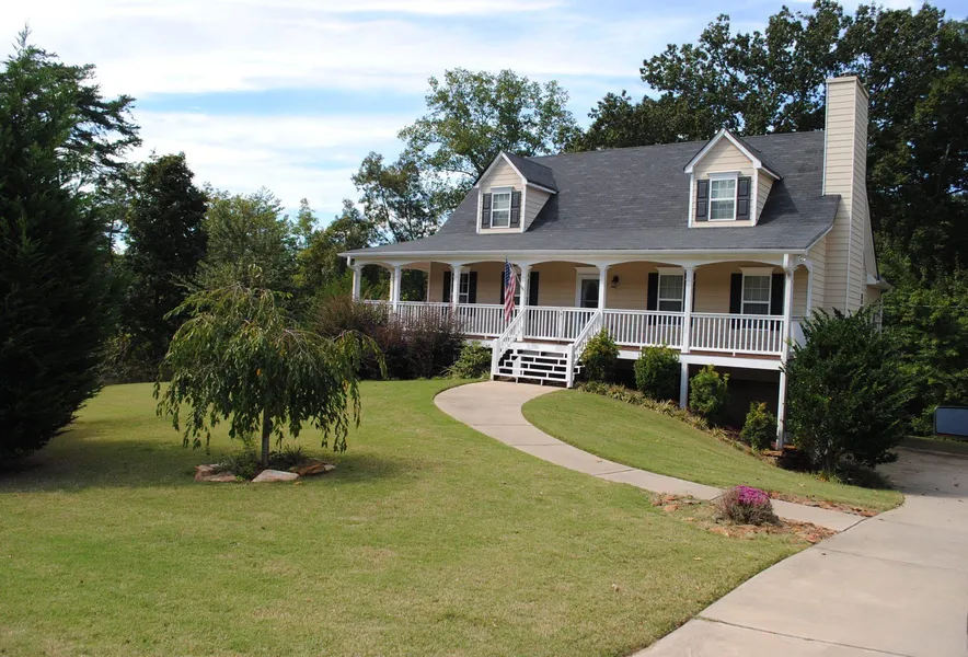 Super private Cape Cod style home with a wraparound porch in a smaller well-maintained South Pickens neighborhood. This home has a large living room featuring a stacked stone wood burning fireplace. It opens to a large formal dining room with beautiful hardwood floors. The large kitchen has tons of cabinetry, multiple work areas & a huge vaulted ceiling, bay window breakfast area opening up to a nice deck for entertaining. The main level is completed by a half bath/laundry & the master suite. The large master bedroom has a private door to the side porch, a spacious closet & big bath with double vanities, a jetted tub & separate shower. Upstairs finds two dormered window bedrooms each with closet space & a full second bath. The drive under garage has lots of storage space & a separate room waiting to become the man cave. The private yard features native plants, unusual specimen trees & has several areas suitable for play areas or a garden. Sellers have applied for short sale with lender.
