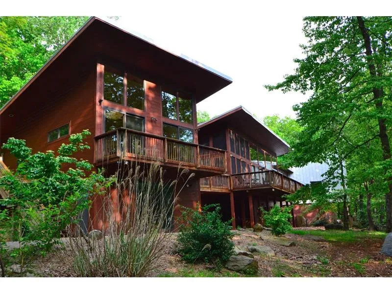 Windsong, designed in the Prairie School style of Frank Lloyd Wright is nestled amid 30 gated secluded acres, and offers spectacular mtn. views. The floor to ceiling glass & windows of the rear facade bring the outdoors inside. Visually the home appears to be multiple structures centered around the atrium separating the public & private living space. The chefs kitchen featured in "Kitchen Design Magazine" opens to massive dining & family rooms with a hand chosen stone hearth. Finished terrace level offers private suite, bar & extensive wine cellar w/a custom designed iron gate. The exterior is Cypress & Stone; decks are made of Ipe wood & offer an outdoor shower! This is truly one of a kind Home! The kitchen offers top of the line appliances Subzero refrigerator, Viking stove, large walk in pantry that includes a freezer, washer & dryer(which remain with home). The wet bar has a unique marble top picked form a local marble mine. Flooring is beautiful hickory/pecan wood. Two large generators keep home running should you lose power.