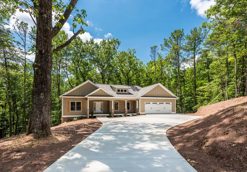 New Home just completed. Split bedroom plan spec home with many custom features! Hardwood floors throughout with Granite counter tops in Kitchen and bathrooms. Masonry fireplace and gorgeous custom coffered Ceilings in the Dining Room! Master Bedroom has trey ceilings with huge walk in closet. Very private rear deck for firing up that gas grill. Front porch is very inviting with stained tongue & groove Ponderosa Pine Ceilings with can lighting. Double car garage with insulated garage door for a warmer start on cold mornings! Full Basement ready for your finishing ideas