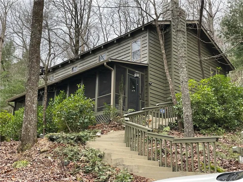 When you dream about the perfect mountain cabin, this is it! One of only 115 certified Big Canoe Plummer cabins, this spectacular home has kept the original vision and feel of its famous builder, Dick Plummer. In fact, this very special home is one of his larger and most unique cabins! You will immediately walk into the expansive, screened in front porch where you will have to force yourself not to sit down and drink in the cool Georgia mountain breeze. Once you step inside, the wood burning, floor to ceiling stone fireplace takes center stage. The kitchen has its own rock patio that is perfect for grilling out or growing fresh herbs and it opens seamlessly into the living room. There is even a butler pantry so storage is unusually spacious. For your convenience, there are two primary bedrooms. One on the main floor and another upstairs with its own deck that overlooks a very private nat...