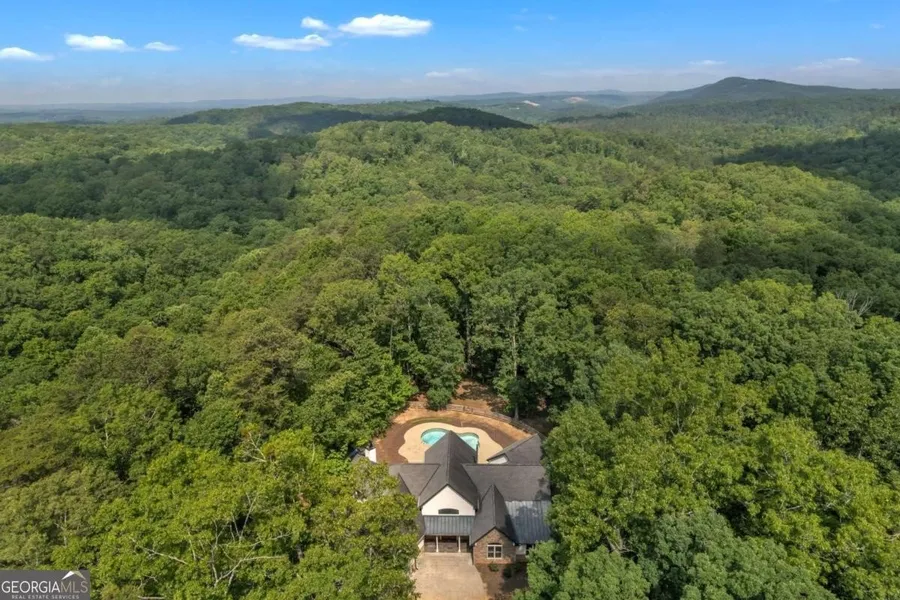 Nestled in the community of Fisher Creek Estates, this unique 4-bedroom, 3.5-bathroom custom home offers the perfect blend of luxury, comfort, and natural beauty on over 3 acres of private, wooded acreage. Ideal for entertaining or tranquil everyday living, every inch of this residence exudes thoughtful design and high-end finishes, making it a true gem. Step inside to an open-concept main level bathed in natural light from a dramatic wall of windows, creating an airy and inviting atmosphere that seamlessly connects indoor and outdoor spaces. The heart of the home is the gourmet kitchen, a chef's dream featuring exotic Brazilian granite countertops, sleek tiled flooring, and top-of-the-line stainless steel appliances-including a gas range with convenient pot filler and a spacious island with an additional sink for effortless meal prep and gatherings. Custom cabinetry provides ample storage, while the adjacent dining area flows effortlessly into the living spaces. Relax year-round in the sunroom, complete with a cozy adobe-style fireplace and direct access to a private patio-perfect for morning coffee or evening stargazing amid the surrounding trees. The main-level primary suite is a private oasis, boasting oversized windows with breathtaking views of the lush backyard and inground pool. Unwind in the spa-like en-suite bathroom, outfitted with a luxurious waterfall showerhead, oversized soaking tub, dual vanities, and expansive walk-in closet. Upstairs, discover a versatile space, ideal for remote work, hobby room or as a fourth bedroom with its own full bath. A large mudroom and laundry area, complete with a utility sink, leads to the attached 2-car garage, which includes abundant storage space. Outside, there is a sparkling inground pool surrounded by mature hardwoods and gentle terrain, offering endless opportunities for outdoor enjoyment in this peaceful neighborhood. Recent updates, including fresh interior paint and a beautifully landscaped front yard, enhance the home's move-in-ready appeal.