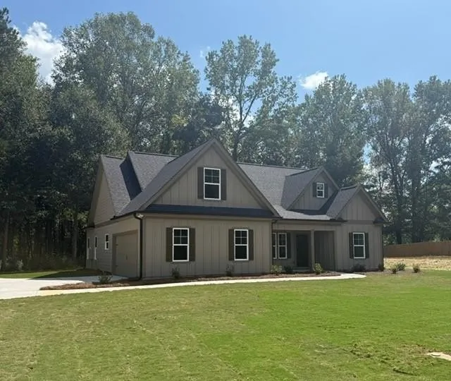 Brand new construction 3-bedroom, 2-bathroom ranch-style home offering comfort, convenience, and one-level living. Step inside to an inviting open-concept layout featuring a spacious living room with abundant natural light, a functional kitchen with white cabinetry and quartz countertops, and a cozy dining area perfect for family meals or entertaining guests. The primary bedroom includes a private bathroom with double vanities and a nice tile shower. Two additional bedrooms share a full hall bath ideal for family, guests, or a home office. This home also has a finished bonus room above garage to provide additional living space. Outside, enjoy a large backyard, perfect for relaxing or gardening, along with a covered back porch for outdoor relaxing.