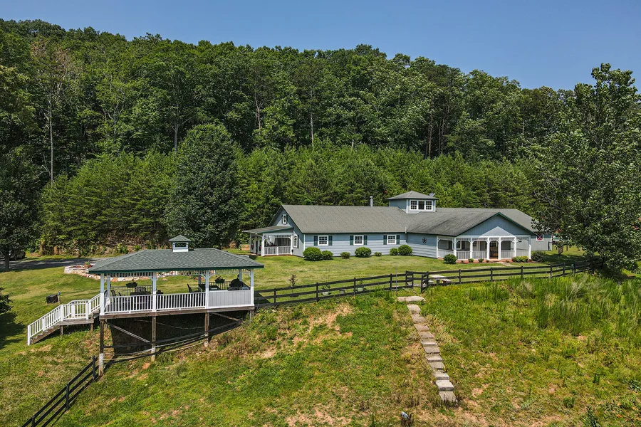 This nearly 40+/-acre ranch in Jasper Georgia is truly one of a kind. It is conveniently located behind the Pickens county airport and just two miles to Highway 515 and 53 with a variety of grocery stores and fast food chains Etc. Not only does this property have four streams and waterfall, but you will enjoy spectacular mountain views from every corner of this property. There are acres of pasture with board fence and four-star barn amenities. There are also two horse runs and barns that make this property perfect for horse lovers There is a large workshop, that could also be easily be converted for an RV parking facility. There is a creek side campsite, a riding arena and endless trails throughout the property. This adorable home has three bedrooms as well as a sleeping Loft for overflow guests. A possible guest suite perfect for in-law suite or return empty nesters! The property boasts a 12 x 24 gazebo with a complete outdoor kitchen where are you could enjoy a glass of wine and watch the sunset over the mountains! Just down the steps is a smokehouse with pizza oven and fire pit. You are sure to love the custom small rock garden pool with wading area and a waterfall and stream which falls into the pool! This property could also be an investment property with VRBO Or Airbnb. There are also three rentals on the property for added income. This property is so unique and amazing, It is difficult to describe. Please call for a custom appointment to see this breathtaking property in person. Yes this property offers a wide range of activities and amenities for people to enjoy. Also convenient location near many essential establishments. The breathtaking mountain views, and tranquil atmosphere, and diverse features are definitely some of the most impressive aspects of this property. It is truly a one-of-a-kind place that you'll have to see in person to fully appreciate.