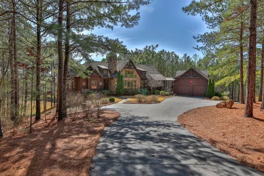 ONE OF A KIND UNIQUE GOLF COURSE HOME THAT INCLUDES 3,472 SQUARE FEET IN THE MAIN HOUSE AND HAS AN ATTACHED 3,000 SQUARE FEET GUEST HOUSE/3 BAY GARAGE! Beautiful setting on this golf course home situated on 2.84 acres of privacy elevated above the 6th green. The main house consists of 3,472 square feet, 4 bedrooms and 3 1/2 baths. Hardwood flooring throughout main level; kitchen/living combination with vaulted screened porch and great room with stacked stone fireplace; spacious kitchen with custom cabinetry and large granite island with separate dining area. The lower terrace level has three additional bedrooms, 2 full baths, wet bar, covered patio and rec room with fireplace. Sellers added on an additional 3,000 square feet Guest House/3 bay garage that matches the main house. Great income opportunity/potential! The GUEST HOUSE has two levels: 1,500 square feet with full kitchen, 2 bedr...