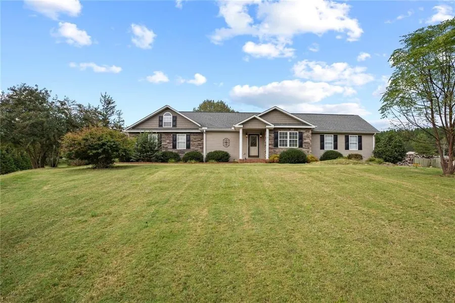 With a traditional vinyl and stone siding exterior and a custom floor-to-ceiling woodwork interior, this impressive home is welcoming you to schedule a showing TODAY! 1622 Walhalla Highway is a remarkable property that would make a perfect primary residence or even a beautiful vacation home. Everything about this 1 acre, NO HOA property is stunning. The home itself is set far back on the property, providing you with privacy and an enjoyable view from the sweeping front porch. Once inside, be prepared to fall in love with the log home-feeling. The open floorplan features a spacious living room complete with a stacked stone fireplace, a cozy dining room with vaulted ceilings, and a dream kitchen with ample granite counterspace, beautiful cabinetry and a convenient breakfast bar. The hand cut wood walls, ceilings, and hardwood floors are continued throughout the home, into the laundry room and the bedrooms. As you enter the master bedroom you'll find trey ceilings, a private full bathroom, and a walk-in closet. On the other side of the home there are two additional bedrooms that share an oversized full bathroom. The flex room is a great bonus as it is spacious enough to be used as a fourth bedroom or utilized as an office, craft, or play room. Outdoor living is a delight as this home has a back covered porch located right off the kitchen. Completing this home is an attached garage with space for parking and also storage. Conveniently located within 3 miles of Downtown Pickens or within an easy 20 minute drive to Easley and Lake Keowee. The property is also located in a USDA-Eligible area, 100% financing may be available. Come make this beautifully unique and charming house your dream home.