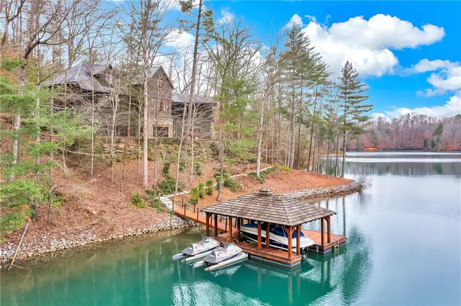 A one of a kind custom mountain-lake retreat designed by renowned architect, Keith Summerour. The moment you enter the private drive you feel a sense of calmness and relaxation. A drive thru garage and pea gravel courtyard greet you upon arrival. The slate roof, wavy edge siding, copper gutters and natural stone are the perfect combination of rustic-elegant style. Perched upon one of the most rewarding locations in The Reserve, this lakefront masterpiece is located in a quiet, deepwater cove and enjoys sweeping lake and mountain views opposite a protected island. This 5 bedroom, 5.5 bath home is designed to have a open airy feel to compliment the rustic detailsâ??reclaimed pine floors, solid mahogany doors, mahogany casement windows, high ceilings, custom kitchen with granite countertops and large island, Wolf range and dual sub-zero refrigerators, open spaces, and spacious places to gather indoors and out creates a welcoming place to retreat for some relaxation, or entertain family and friends! The master bedroom has its very own "sleeping porch" along with a private office tucked away. The bathroom features dual vanities, heated floors, a custom walk-in closet and a large soaking tub. The home easily sleeps 25 people. A separate guest house offers a cozy getaway for guests who prefer a little more privacy. The outdoor porches provide ample entertaining space with a large masonry fireplace to gather around. The home is fully furnished and awaiting new owners to make a lifetime of memories. This homesite has 384 feet of rip rapped shoreline, a private sandy beach, and Reserve standard quality dock with boat lift and 2 jet ski ports. Premier membership $60,000 required with purchase.
