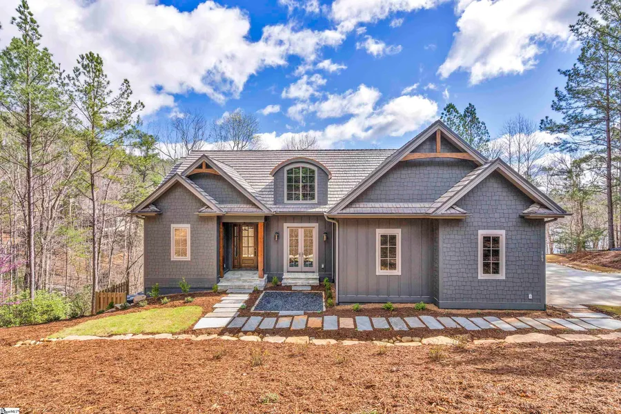 109 Sunrise Ridge presents a wonderful opportunity for a sparkling new lakefront home in the prestigious private community, The Reserve at Lake Keowee. Situated on just over an acre, on a private cove, this home is constructed of durable, low maintenance materials: Hardi siding, Davinci composite shake roof, and premium LVT flooring throughout. The main level living space features an open floorplan, with soaring ceilings and a modern linear gas fireplace. The adjacent contemporary kitchen has room for several cooks, and is appointed with quartz countertops, stainless appliances, and custom cabinetry. This home is full of natural light, clean lines, and beautifully neutral walls and materials. The master suite is located on the main level, with a luxurious bath and sliding doors to porch. An office/guest bedroom is also on the main level. The lakeside porches, both main and lower, will be...