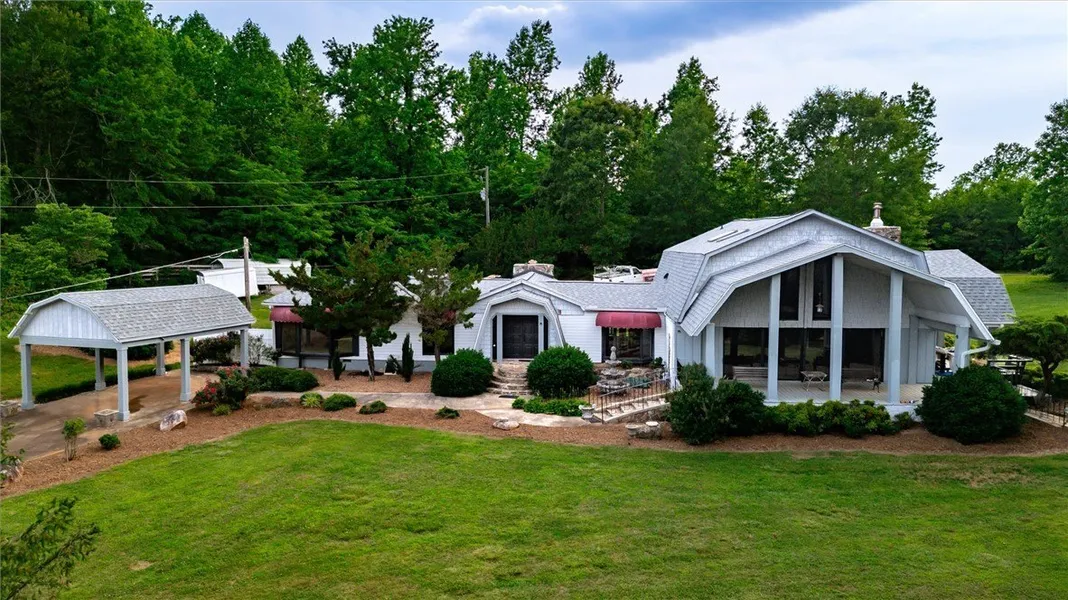 This home is one of a kind. Tucked away, private and your own personal paradise yet close to shopping and also close to Greenville. And there are multiple lots. There are multiple decks and balconies to enjoy and loads of light in this open floor plan the vaulted ceilings in your large living room with huge stone fireplace. In fact, there is beautiful stonework inside and outside to enjoy. The property is quite level and useable and there is a large barn and loads of covered parking for your toys. With new ductless air conditioning units, beautiful new windows, fresh paint, new carpet, new water heater, and so much more. This home is so energy efficient with a new vapor barrier and flooring insulation throughout in crawl space. Set up your private showing today.