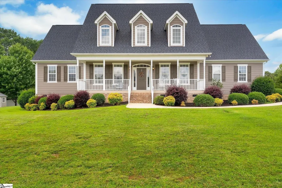 Welcome to this stunning two-story home offering approximately 3,600 square feet of comfortable living space on a generous .70-acre lot in the highly sought-after Eden’s Ridge neighborhood, with ONLY $150/year HOA!! Inside, you’ll find four bedrooms, three and a half baths, and a thoughtfully designed floor plan perfect for everyday living. This home features numerous updates and has been meticulously maintained—truly move-in ready for its next owners. Gather in the cathedral-ceiling den, complete with a cozy fireplace—perfect for chilly evenings. The home also features a formal living room, ideal for entertaining or as a dedicated office space. The primary suite is conveniently located on the main floor, offering a peaceful retreat with privacy and comfort. The spacious primary bathroom includes a jetted soaker tub, separate walk-in shower, and a large walk-in closet, creating the ultimate spa-like experience at home. The kitchen is a dream, with granite countertops, a central island, abundant cabinetry, and a charming coffee bar and desk area. Enjoy meals in the formal dining room or the light-filled breakfast nook overlooking the backyard. Upstairs, you’ll find three spacious bedrooms and a bonus room that’s perfect as a playroom, media space, or guest area. Step outside to enjoy the rocking chair front porch, a screened-in back deck, and a dedicated grilling area—ideal for relaxing or entertaining. And...don't miss the garage! The property also includes an outbuilding with camper hookups, adding extra flexibility and convenience. Located just minutes from Lake Keowee and within the coveted Daniel High School district, this home offers the ideal blend of comfort, functionality, and location.