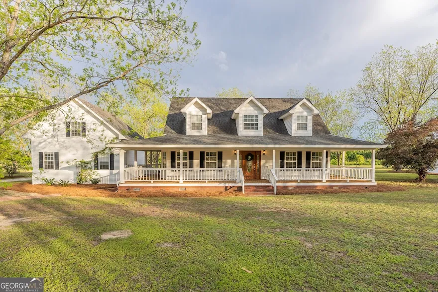 Welcome to the country escape you've been dreaming of-52.384 acres of beautiful, usable land paired with a classic 2,600 sq ft farm-style home that blends charm and function. This 3-bedroom, 2.5-bath home features a bonus room above the garage and a spacious living area with soaring wood ceilings, an open view to the upstairs, and a large, cozy fireplace as its centerpiece. The eat-in kitchen offers plenty of space for gathering, but the true showstoppers are the deep front and back porches-perfect for relaxing and taking in views of the pecan orchard and two fully stocked ponds. The land itself is thoughtfully laid out with 15 acres of hayfield, a tilled garden area ready for planting, and fenced boundaries around the home and orchard for added security and peace of mind. Whether you're looking for a homestead, a weekend retreat, or a place to live out your farm dreams, this property offers it all-space, beauty, and functionality in one unforgettable package.