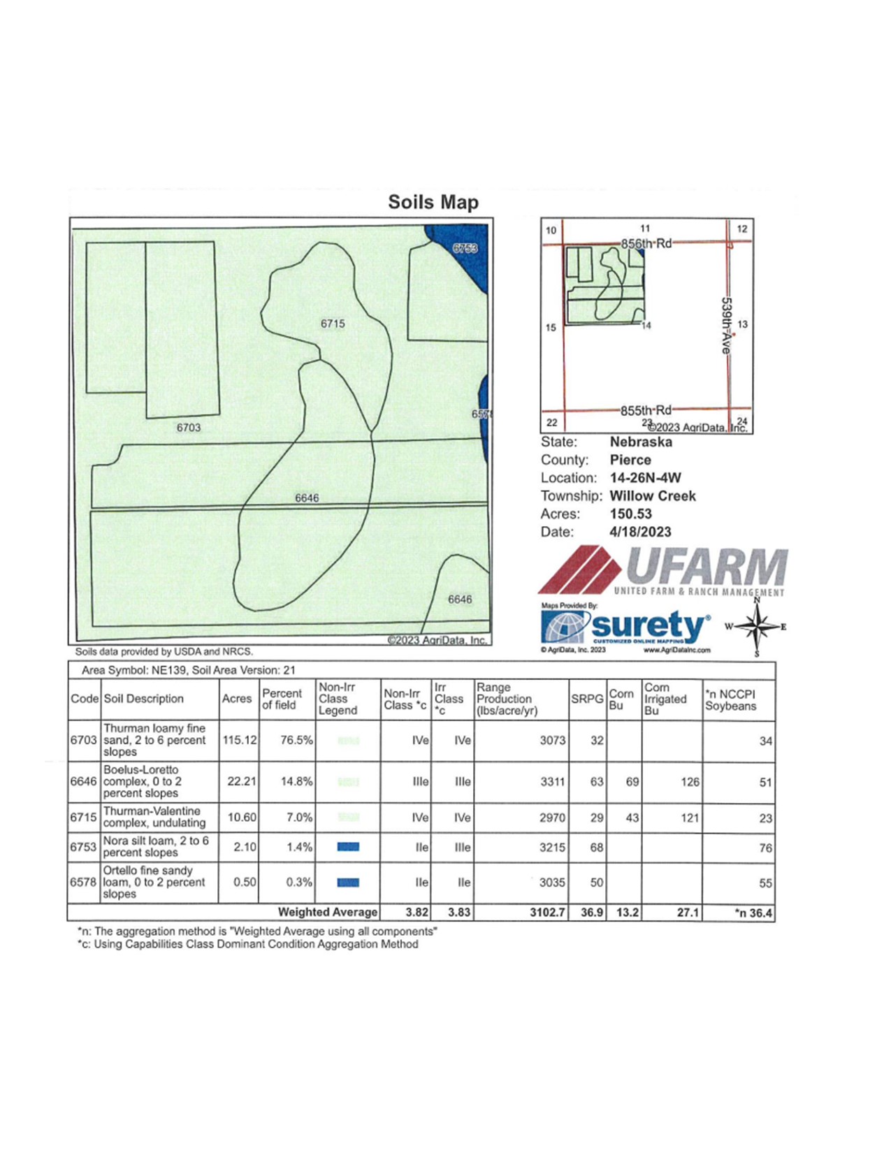 SOILS: The land is primarily Thurman loamy fine sand and Boelus-Loretto complex 0-6%.