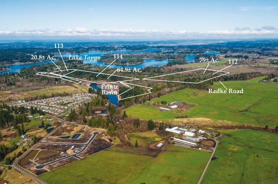 This 79 acre residential development tract is located near Lake Tapps and Printz Basin. Auction Property #114, Printz Basin East Residential Development Tract with timber, corners with this property at its southwest corner. A December 2014 timber cruise report shows an estimated 65 acres of operable timberland with a total of 1,110 MBF, 89% of which is red alder and red cedar. Additional volume of 3,767 tons of chip-quality mixed species is located on the property. Approximately 14 acres lie within areas estimated to be within wetland areas or buffers. No wetland study has been performed. A complete copy of the cruise summary is available in the Supplemental Information Package. An eagle nest is located at, or near, the south property line.