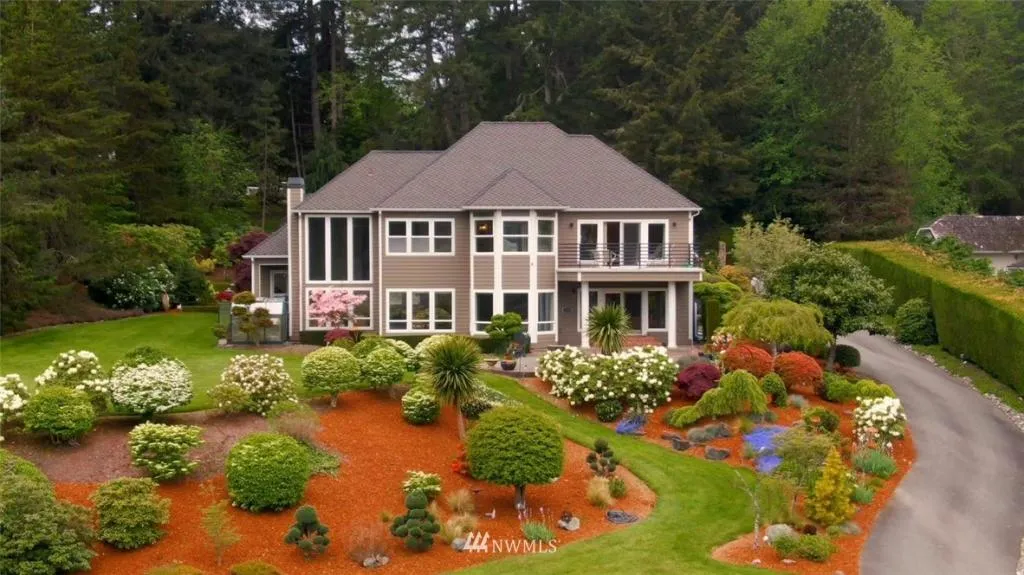 Luxurious custom Wollochet Bay view home on over 1.5 landscaped acres sits at the end of the road for your privacy. This 3264 sq.ft 3Bd 2.5 BA handsome home has magnificent windows that grace entire home allowing full views of the Bay & natural light. Spacious entry invites you into a stunning foyer w/open staircase & charming den w/deck. This unique beauty enjoys formal living & dining, family/great room off gourmet kitchen & breakfast nook. French doors lead to sunny patio, lush lawn & outdoor fun. Custom woodwork accents the hardwood floors. Master suite is a sanctuary w/viewing deck & huge closet spaces. All bedrooms face the water view. 3 car garage has room for your toys. Full sprinkler system. Boat Launch is right off your driveway.