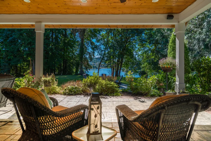 Casual elegance excludes in this 4,400+ square foot home on 1.5 acres of manicured grounds. Attention to detail with updates in keeping with today's lifestyle delivers a home with captivating views of Wollochet Bay. Unique Waterfront Estate with 98 feet of waterfront with private floating dock. Timeless elegance travels throughout this home with discerning finishes of vaulted ceilings, granite, hardwood, defined archways, and crown molding. Entertainer's dream backyard with covered patio and hot tub overlooking tranquil water fountain, fire pit, and private waterfront. Upon entrance, you are warmly greeted by 10' ceilings, natural-tone paint, and a bright and open floor plan seamlessly connecting the kitchen to the living room and leading to the inviting, sunny backyard. Open concept island kitchen with large eat-in dining, granite counters, 2-full sized sinks, stainless steel appliances...