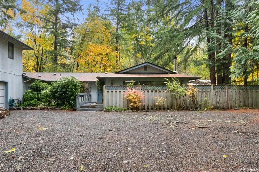 An opportunity like this doesn't come around very often. On over an acre and a half in a really great spot, lies a diamond in the rough. Designed to let in all the natural light and surrounded by lush greenery, you'll experience a cozy warmth that only the PNW has to offer. You'll appreciate the main floor living with generous space for entertaining guests, a formal dining room, a yard worthy of even the biggest garden party, a shop with plenty of space for all of your hobbies and so much more. A big laundry room, extra storage space, a specially designed "utility kitchen" (brewers delight?) and then some. Over the garage, you'll find two big bedrooms, an additional storage area and linen closet, what more could you want? Welcome Home!