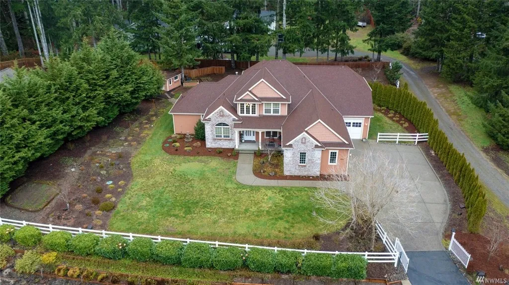 GORGEOUS Craftsman home that has been impeccably maintained! This 4 bed home sits on a 2 acre lot, down a private, quiet culdesac that is shared w/ only 7 other stately homes. A few of the features include: 2 story great room w/ an amazing 15 ft wall of windows, large den, beautiful kitchen w/ granite counters, island w/ prep sink, under cabinet lighting, 4" base trim, crown moulding & dry bar. Primary on the main is exquisite! It also has a wall of windows looking into the beautiful backyard & water feature, lrg walk-in closet & gorgeous bath w/ a huge walk-in rain shower. Hardwood floors, new carpet in living, large utility & walk-in pantry. Covered back porch, gated entry, garden areas, underground sprinkler system, 2 garages, RV parking