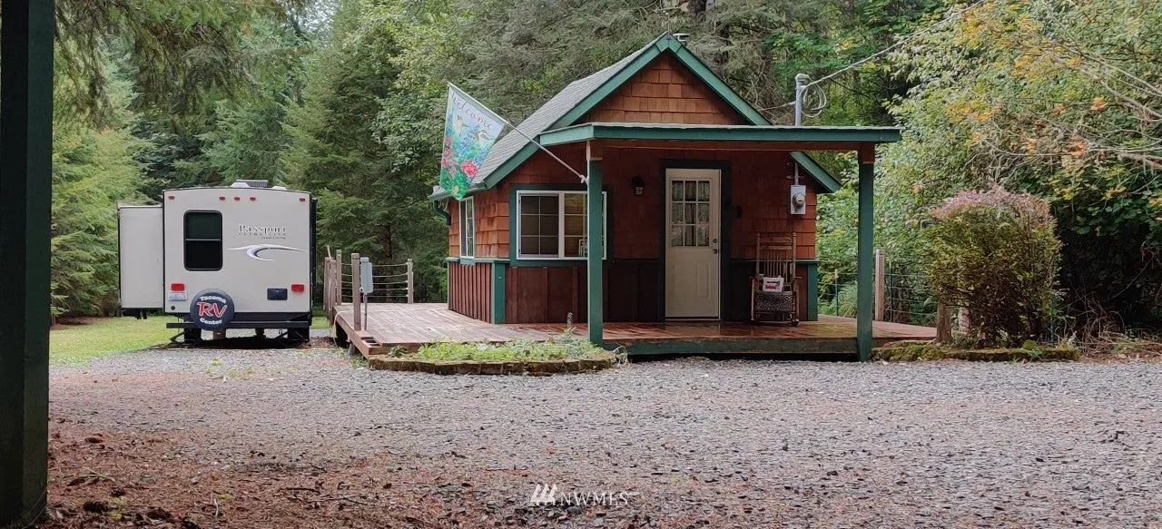Great opportunity to have your own little slice of heaven. This 224 square foot cabin has the feel of camping with a few creature comforts, such as power, internet, TV, a large outbuilding for storage, fire pit and is located only 4 miles from the gate of Mount Rainer. You will be close to many local dining options you can go to the mountain, nearby lakes, and food options and come back to relax by the fire or just enjoy the expansive deck. The property also features a hiking trail that leads to a bridge that passes over a seasonal creek on the property then continues to the edge of the property to fantastic views of area hills and the Nisqually River.