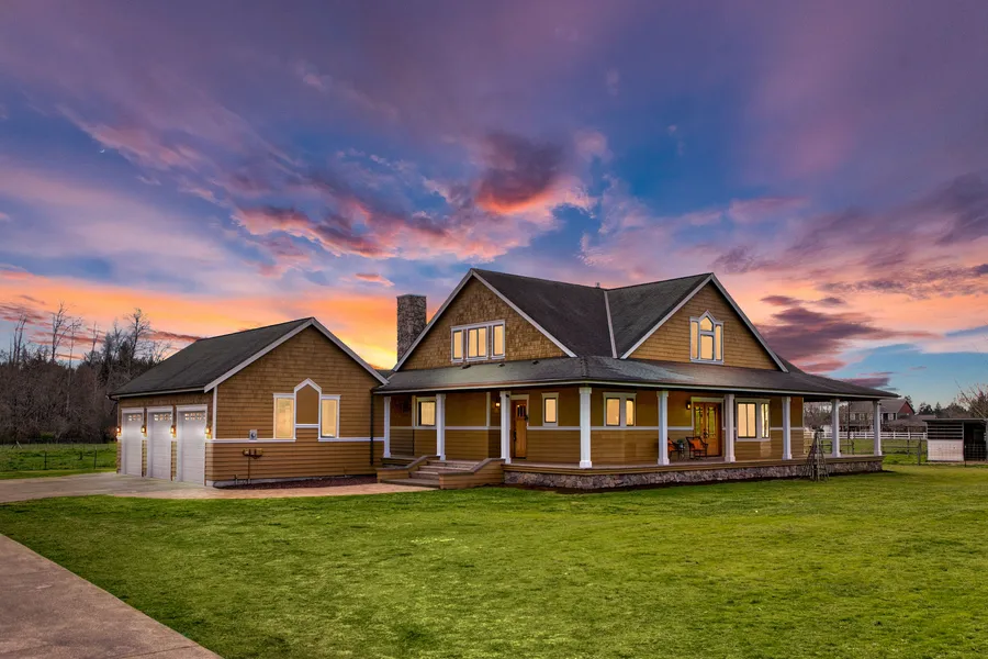 Welcome to Rainier Ranches. This gated equestrian community of 26 homes will charm you. Custom-built craftsman on 12+ acres w/cobblestone walkway, wrap around porch, vaulted ceilings, large gourmet kitchen w/2 pantries, dining nook w/area for wood-stove. Stunning hardwood floors compliment wood wrapped windows & molding. Main-level suite w/foyer & double door entry, slider to back porch, extra large 6-pc bath, double vanities, tiled shower, & large walk-in closet. Upstairs youll find 2 large BR's w/walk-in closets & main bath. Office/4th downstairs. Oversized/Height 3-car garage. 3 large horse/animal stalls w/hay storage & a 12-hen coup. Enjoy listening to the creek or the take your horse for a ride on the bridle trails nearby. A must see!