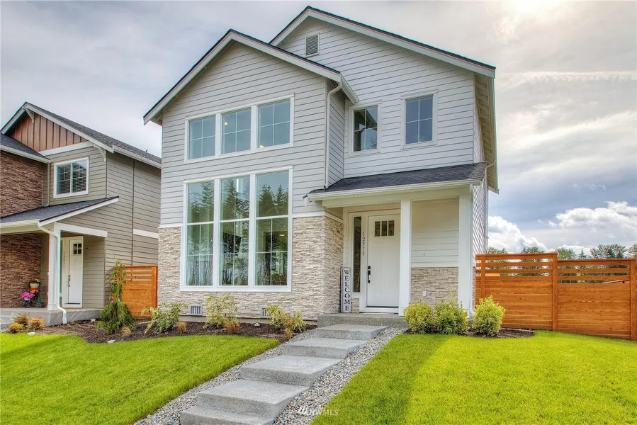 Calling all buyers! No reason to wait for a new build when you can take advantage today of this seller's sudden job relocation. Sought after "floor plan," this beautiful contemporary corner lot is perfectly positioned and surrounded by forested walking/mtn. bike trails, a brand new playground and highly rated schools. 3 bed, 2.5 bath w/loft, soaring windows offering natural light throughout. Quartz countertops, tile backsplash, generous walk-in pantry, 5-piece master bath w/free-standing tub & two closets in Mstr. Gas FP & SS appliances cover all inside necessities. Out back you'll enjoy entertaining year round in your fully fenced backyard w/covered patio. No expense was spared in upgrades. Builder warranties are in place & transferrable!