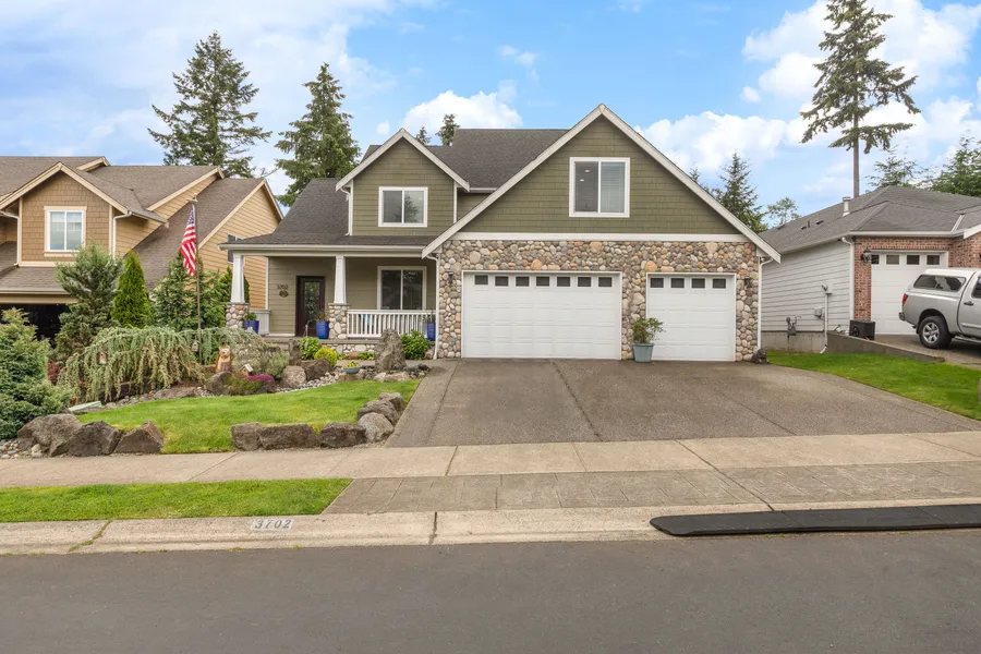 Gracious living and entertaining in this splendidly designed home. Beautiful 3-bedroom, 2.5 bathroom with bonus room, office and media room, 9-foot vaulted ceilings and Brazilian cherry hardwoods throughout. Beautiful main floor primary suite with gas fireplace, 5-piece bath and walk-in closet is a wonderful retreat after a long day, with private access to covered deck and hot tub. Modern gourmet kitchen features slab granite counters, island, GE stainless appliances with double oven, and custom high end soft close cabinets. You will love the open concept design of the family room with gas fireplace and access to your private covered deck and fenced yard.