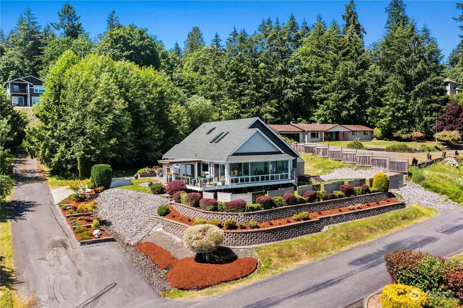 Experience the breathtaking beauty of Fox Island from this exceptional view home in an amazing location on coveted Bella Bella Drive! Enjoy panoramic views of Hales Passage, Fox Island Bridge & Mt. Rainier, with abundant marine & wildlife sights from every turn. Entertain in the fabulous All-Season Sunroom adjacent to the great room, complete w/2-way FP, or unwind in the heated gazebo on the patio overlooking the sound. Coastal vibes & modern luxuries throughout- including main floor Primary, stunning updated kitchen, custom wine room, guest suite on main, & A/C for year-round comfort. Just steps to the Demolay Sandspit & Fox Island boat launch, this home offers a perfect coastal retreat. Relax, savor every sunset, and be inspired here.