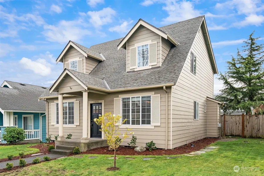 This transformation changed this darling home and welcomed it into an updated 2025 sophisticated Pacific NW charmer. The Open concept feels great, highlighting the soaring ceiling, open staircase & living room. Updated baths, gourmet kitchen w/timeless granite counters & stainless package addresses the natural finish of hardwood floors & wood wrapped beams. As you walk through the covered front porch w/custom entry door the PNW vibe embraces you. The location in Palisade Village is great w/access to shopping, parks, trails, schools & more. Attached 2 car garage has private alley access & more driveway parking. Lush landscaped, private fenced backyard is a gem. Primary bedroom enjoys ensuite & walk-in closet. Roof is just under 1 year old.