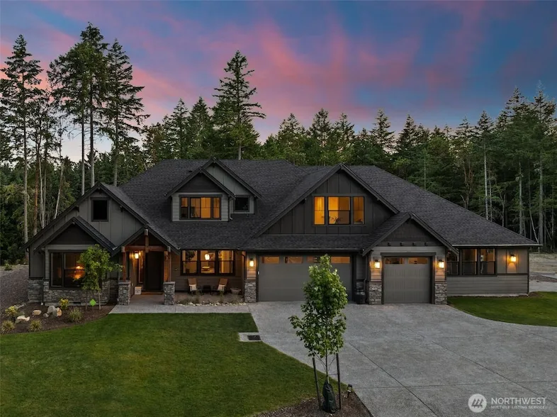 Welcome to your modern, main-level living retreat where luxury design meets everyday functionality in Gig Harbor. Built in 2023 by local builder, Garrett, this estate sits on 6 flat acres just minutes from Hwy 16 & has living space for everyone. Inside, wide plank white oak hardwood floors, natural light, & timeless finishes define the open-concept living. A moody office, serene primary suite, & bonus spaces offer versatility, while designer tile, lighting, & curated details elevate every space. Attached guest suite offers kitchenette & private entry. Upstairs: 2 bonus rooms, bed, & bath. Home offers AC for & large 4-car garage. Near Uptown, new Pen Met rec center, top tier schools & under 30 min to all hospitals. Stunning- request all media