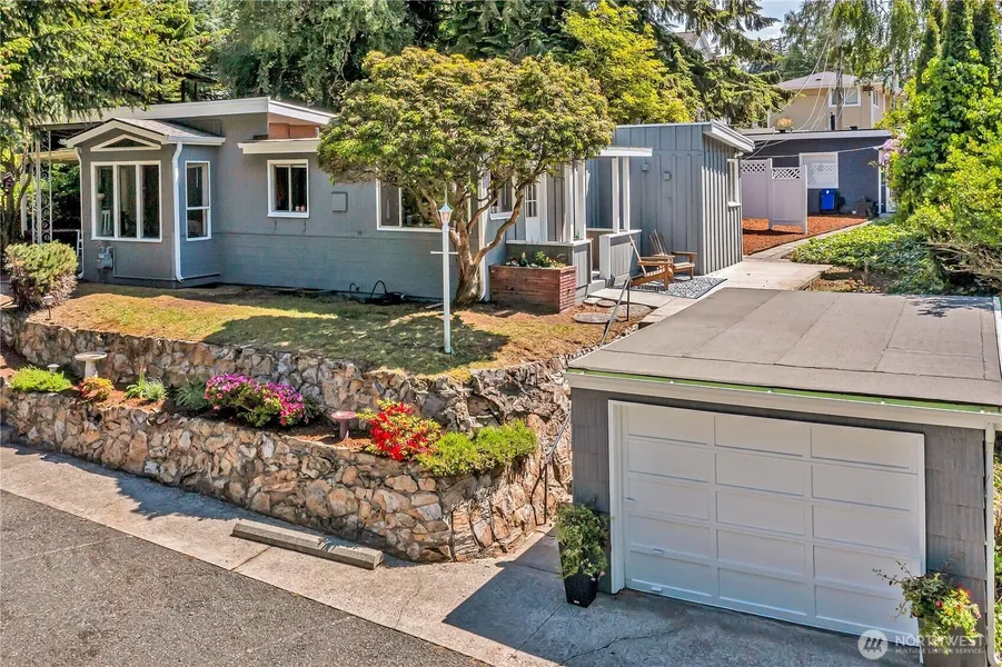 A rare opportunity in sought-after University Place! This charming 2-bedroom, 2-bath home & detached garage sit on a large 10,500 sq ft lot with the unique bonus of a 1-bedroom, 1-bath cottage, which can generate rental income covering up to 25% of your mortgage! The property is tucked away on a quiet street with a peek-a-boo view of Puget Sound & Narrows Bridge. Enjoy cozy evenings by the wood-burning fireplace or relax on the covered porch in this serene setting. Prime location - just minutes from award-winning schools, Whole Foods, Trader Joes, Chambers Bay Golf Course, restaurants, parks, and recreation make this home a perfect blend of comfort and convenience. Home & garage have new roofs; all new exterior paint. All appliances stay.