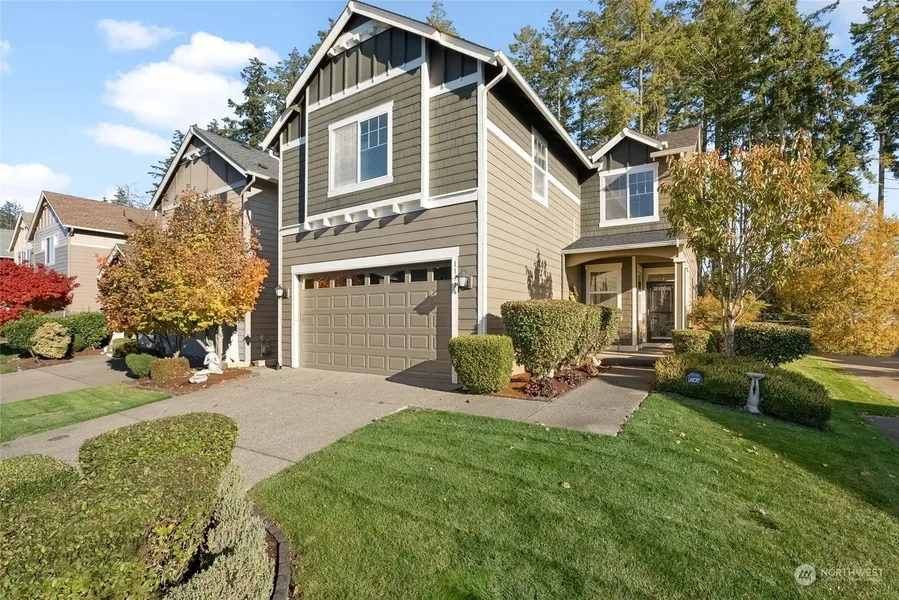 Welcome home to The Ridge at Gig Harbor! Gather together in the open living room and gourmet kitchen which offers views of the beautifully landscaped backyard. Upstairs you'll enjoy the primary suite with an expansive bath and walk in closet. Check out the laundry room which is conveniently located on the second floor which includes plenty of extra counter space. This newly painted home sits just steps away from the Swift Elementary school, shopping and YMCA.