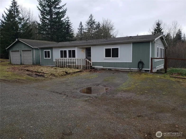 Tucked away on a very private Dead End Road with a rare Opportunity to own Over 5 acres of Nature at its best in the heart of Lake Tapps Area. Peaceful and Secluded Setting. Bring your horses and Pets. A Great Place for RV Parking for all your Toys and Trailers. Hop on your 4 Wheeler, Quad or dirt bikes to ride on your own Trails that you can Design on this one of a kind Property. There is a Pond with a natural spring to offer wonderful irrigation for growing a garden. With County Permission you could stock your own fish. With some TLC this 3 Bedroom Home with Detached Double Garage & Partially Built SHOP is a great value! This bright and spacious home is very liveable with an option to build your own dream Home. There are vaulted ceilings with skylights and laminate floors throughout with a wall of windows, an open concept kitchen and Second Living room open onto the large Entertainment Sized deck looking at over 5 acres. With your imagination this could be turned into a wedding venue??? The Possibilities are endless. You Need to Come and Look at Everything this Home on over 5 Acres has to Offer. See Today!!!