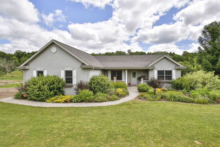 Spacious 4bd/3ba home set on private 10 acres includes open floor plan, main floor living and finished lower level with walkout. Experience country life at it's finest with open acreage for livestock and wooded acreage for recreation. Just minutes from world class trout streams. Additional 10 acres of land and outstanding shed also available. The shed offers ample feed storage capabilities, and a large part of it is heated and air conditioned. Has been used for late winter and early spring calving for beef cows as well as cool housing for show animals. Terrific beef or horse set-up.