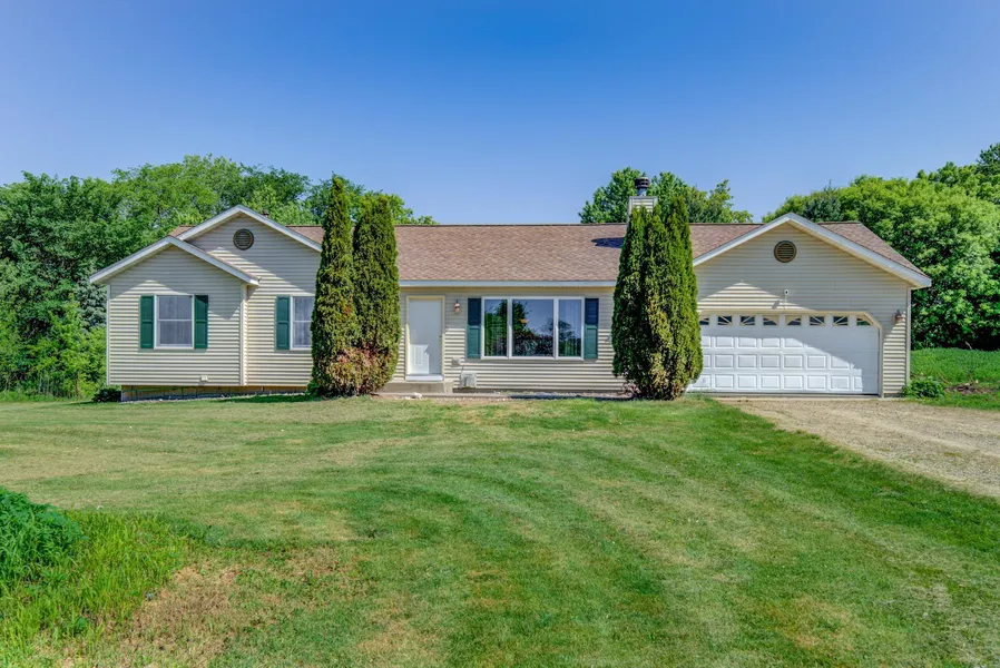 Move in ready. Come see this 3 bedroom rambler and fall in love. 3 bedrooms on the main floor with a private master. New flooring, fresh paint and granite counter tops. Enjoy the open concept living space. Lower level has high ceilings and tons of room for a family room or media room. There is an unfinished area that would be perfect for a 4th bedroom. This home has so much to offer on a quiet dead end street and and a quaint country feel on 3 acres of land with decorative Prairie grass and mature trees.