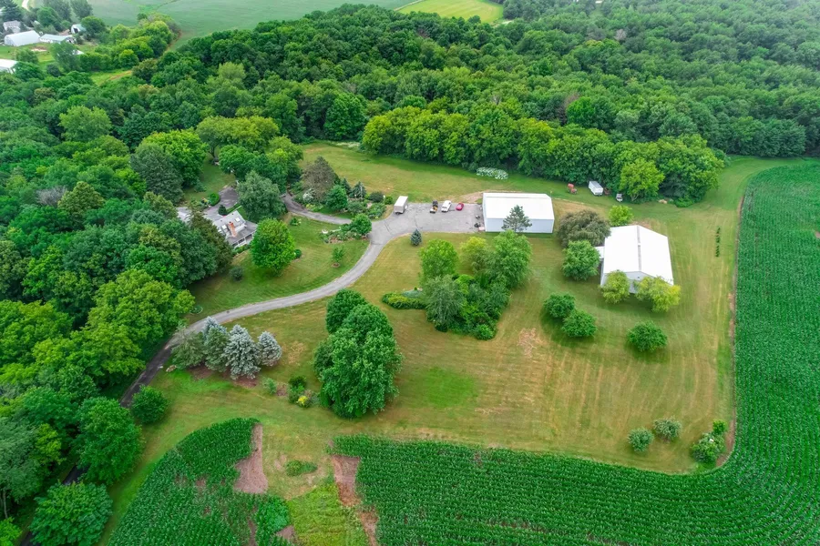 Paradise Found. 40 acres of woodlands and open fields with two large pole buildings and several smaller ones on the property. Secluded for privacy and landscaped for beauty. If you are looking for a place to call home, this is it. A must see.