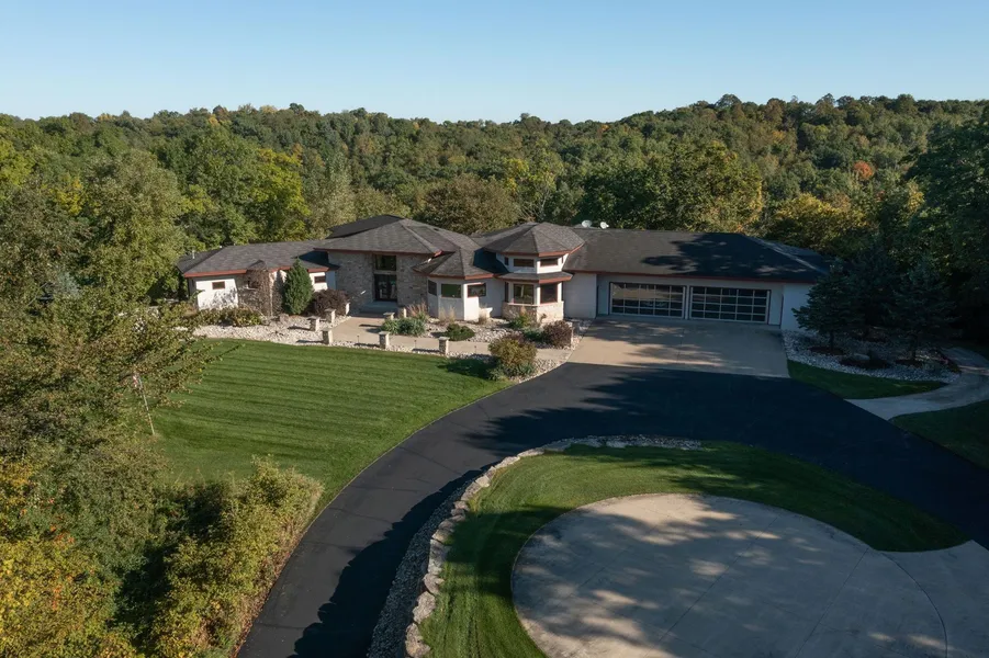 Your approach to this estate is both private and beautiful. The circular drive leads up to the grand entrance of this beauty. The double door welcomes you and the unique design captures your attention! Bright and open, bringing in the nature setting, with generous room sizes, are yours here. Formal dining with alabaster lighting, true chef's delight kitchen with Sub Zero refrigerator, 2 dishwashers, tons of granite counters, and large circular eating area with wood beams, indirect lighting and indoor grill. Owner's ensuite offers massive walk in closet with its own washer and dryer and unbelievable bath. The 4 other bedrooms all feature ensuites, too. Lower level brings you to the amazing rec area complete with wet bar and is open to the family room. The glass entrance to the theater room will not disappoint nor will the large home gym. This beauty is placed on 16 private acres and offers a 40 x 50 custom outbuilding . There are so many amenities this home offers. WOW!!