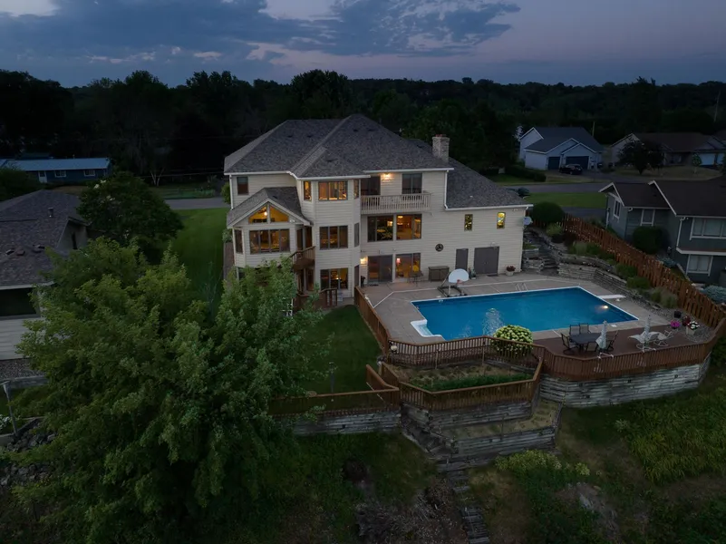 Welcome to 1095 Monroe St S! This one-owner two-story located in beautiful Prescott, WI will dazzle from the moment you pull up! You are greeted by a manicured lawn and landscaping complete with irrigation system. As you enter, the main level features open kitchen with SS appliances, granite countertops & spacious living room featuring a wood burning fireplace and immaculate views of the Mississippi River. Enjoy your morning coffee in the sun room as you take in the view. Upper level boasts a massive master bedroom with full ensuite. Three more spacious bedrooms and a full bathroom round off the upper level. The lower level features a large family room with walkout to the pool, wet-bar area with dining space and a 5th bedroom. The backyard is made for entertaining! Large heated in-ground pool, a deck area overlooking the Mississippi River and a 3/4 bathroom so no need for pool soaked gue...
